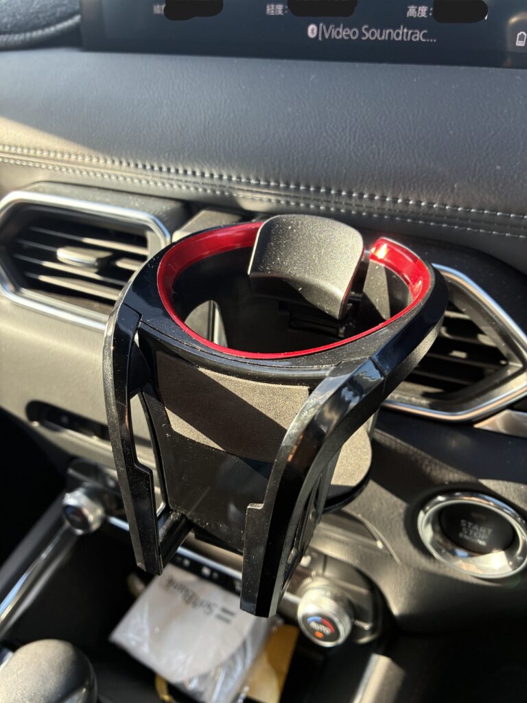 CX-5の純正ドリンクホルダーはセンターコンソールの少し後ろ寄りにあります。これ、実は長距離ドライブになると「ある問題」が起きるんです。
