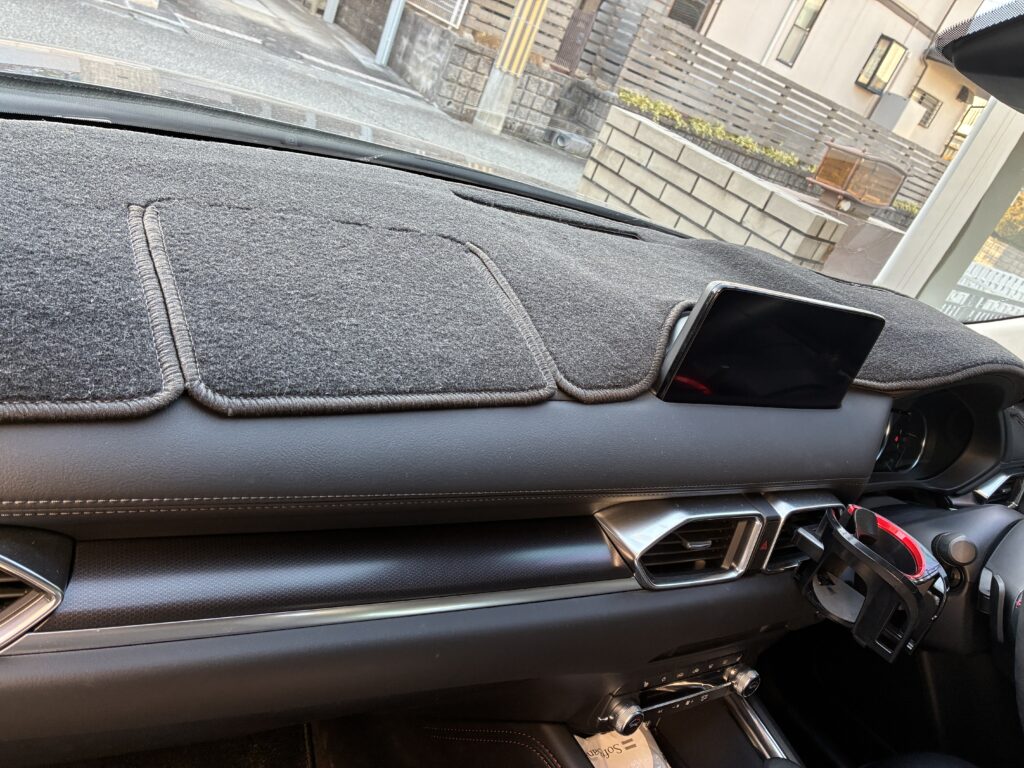 導入理由:天気が良い日はダッシュボードの映り込みが激しく、視界を遮るのが悩みでした。せっかくのヘッドアップディスプレイの視認性も悪化するし、なんとかしたいと思ってたどり着いたダッシュボードマットです。